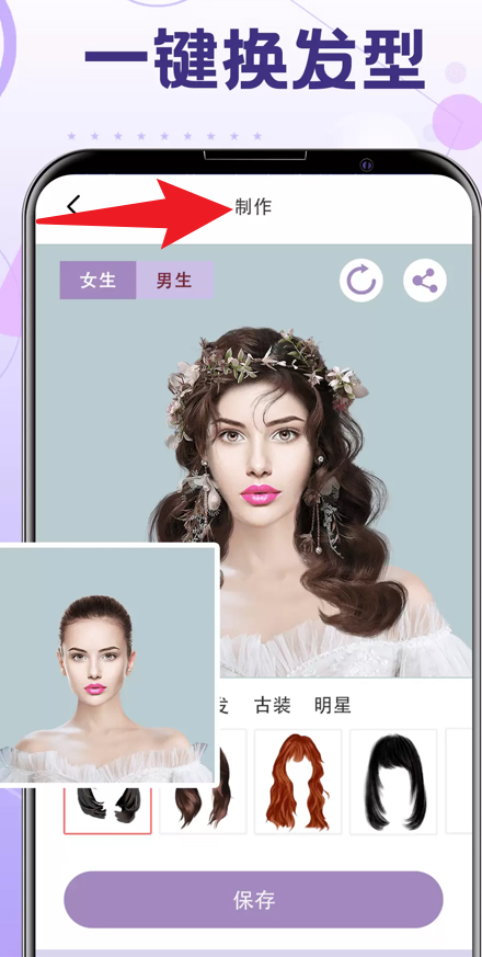 1、在【制作页面】,能一键切换多种发型效果,实时查看不同造型的样子。