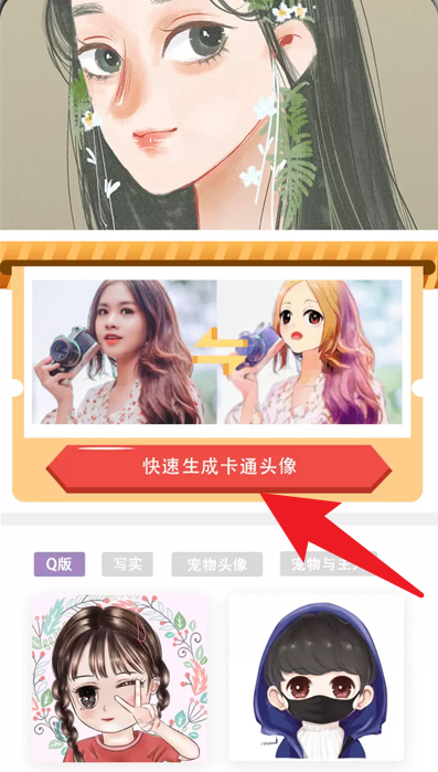 4、借助【卡通头像】功能,能够把真人照片迅速转化为卡通风格的头像,呈现出的效果既生动又有趣。