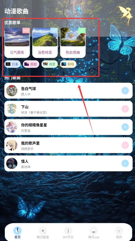 进入首页后,你可以挑选自己喜欢的歌曲类型,点击对应的选项就能进入相应页面了。
