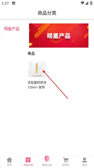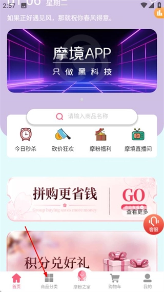 进入首页后,点击页面底部的商品分类选项,即可进入商品分类页面。