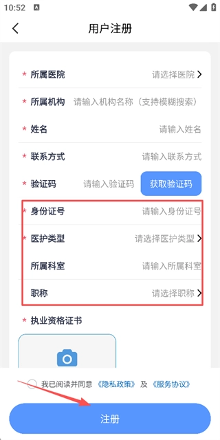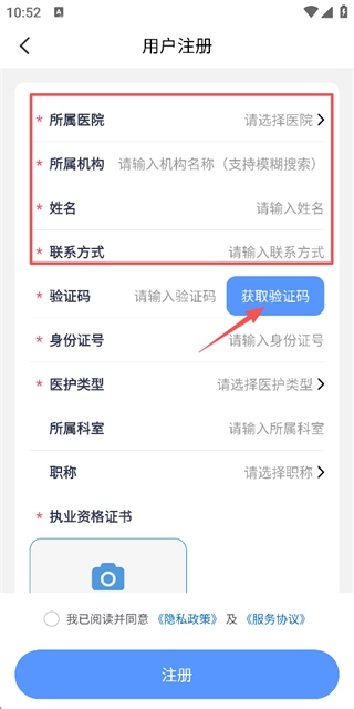 在注册账号页面填写其他身份信息,勾选相关协议后点击注册按钮,即可完成注册流程。