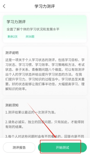 在主界面完成学习能力测评后,系统会生成详尽的分析报告,助力您更清晰地把握自身的学习状态与潜在能力。
