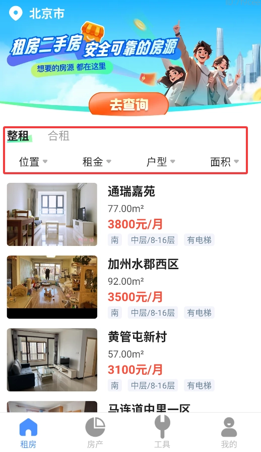 在租房专区,您可以依据自身需求挑选整租或者合租的方式,同时还能按照区域、价格、房型以及面积等不同条件来筛选合适的房源。