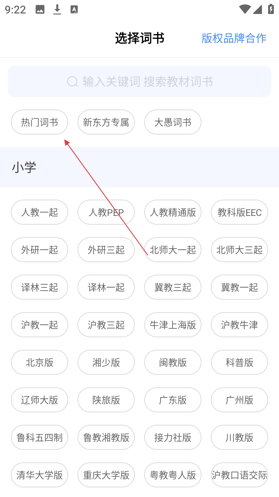 在选择词书的页面中,点击“热门词书”这一选项,即可进入热门词书页面。