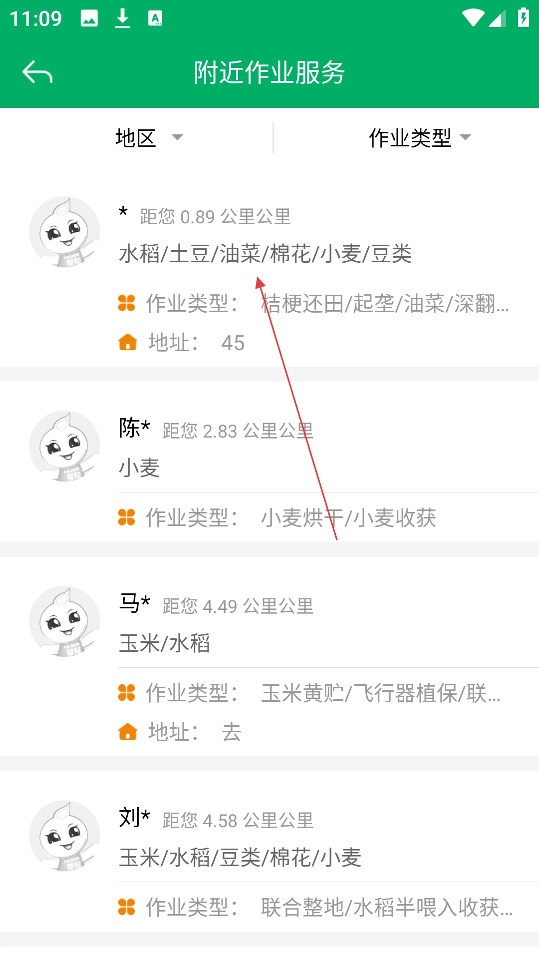 在作业服务专区,点击【作业服务】选项即可查看周边的作业信息。