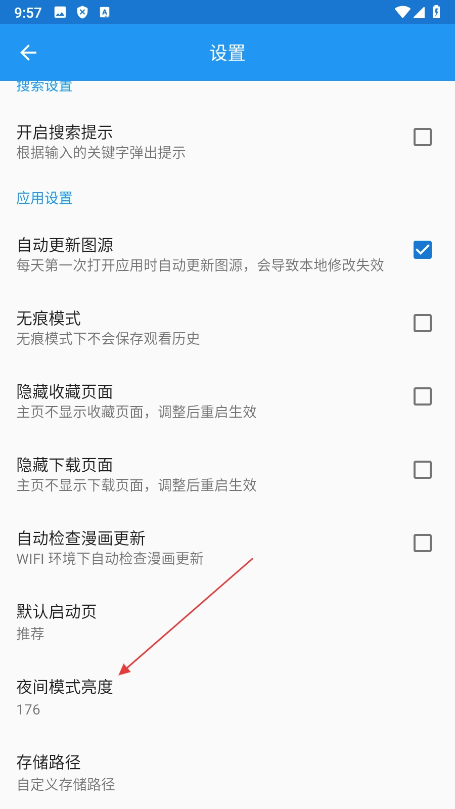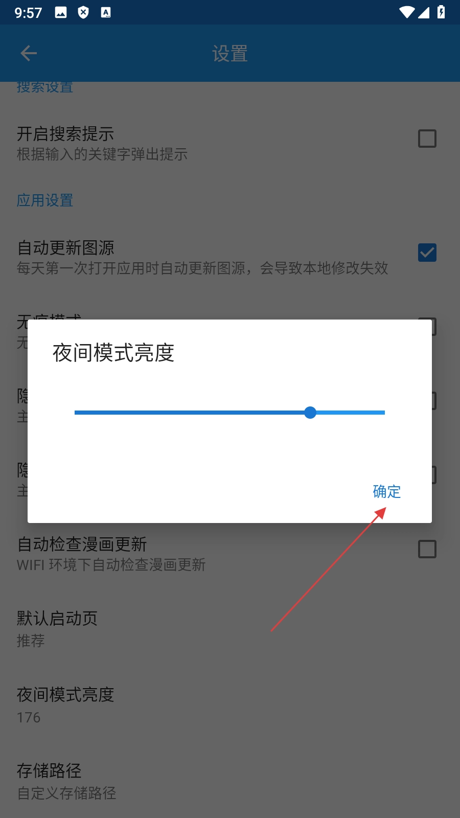 在设置页面找到并点击【夜间模式亮度】选项,随即会弹出亮度调节框。