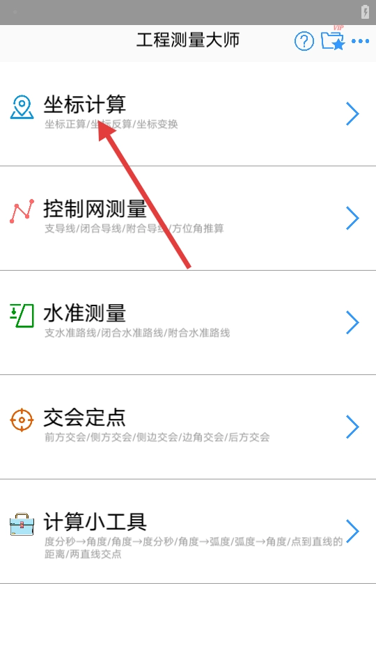 进入坐标计算页面的操作是:在主界面里点击【坐标计算】这个选项。