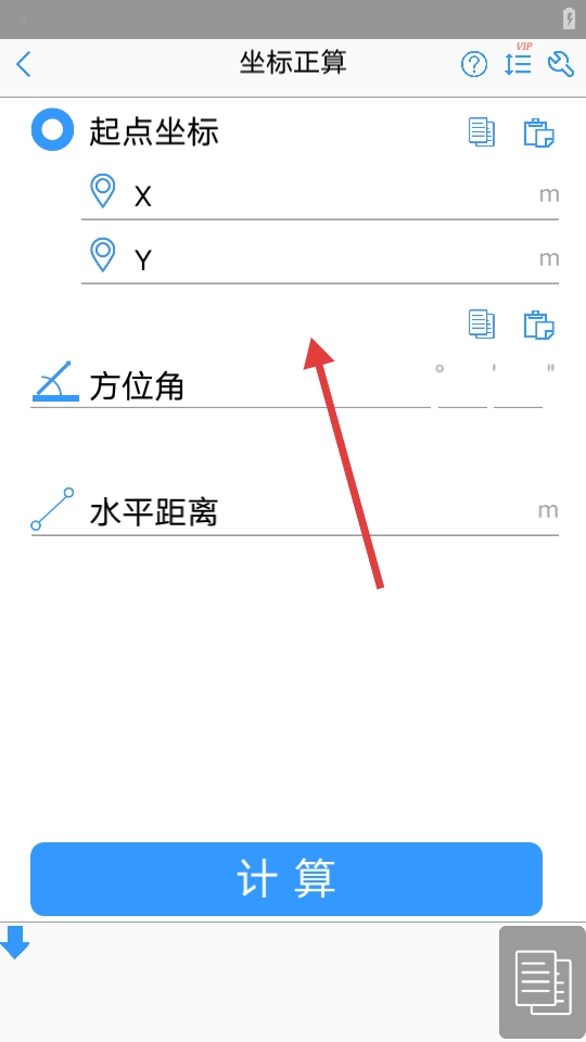 在坐标计算页面里,点击【坐标正算】这个选项,就能进入坐标正算的编辑界面。