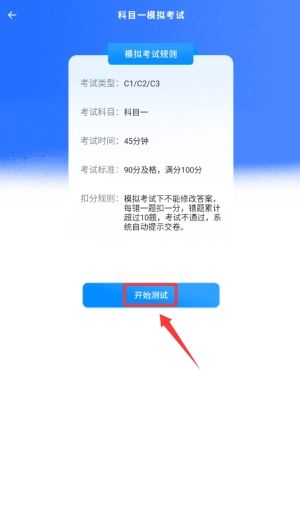 点击“开始测试”按钮后,系统将随机生成契合最新考纲要求的仿真试卷。
