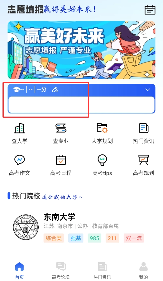 登录后,在首页的“分数评估”模块中填写高考各科成绩,系统将自动核算出总分。