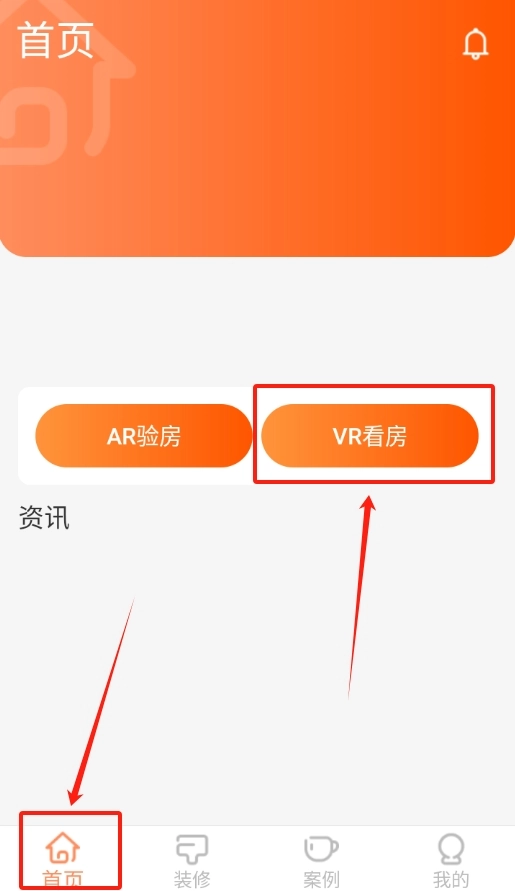 成功登录后系统会自动跳转回主页面,此时点击首页的VR看房功能即可进行VR看房。