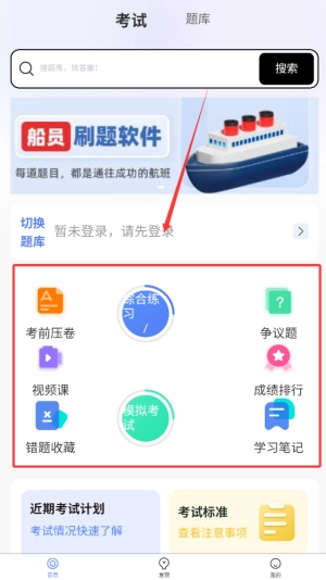 整合了海量船员考试题库,覆盖各类证书考试内容,包含航海学、轮机工程、船舶管理等科目。
