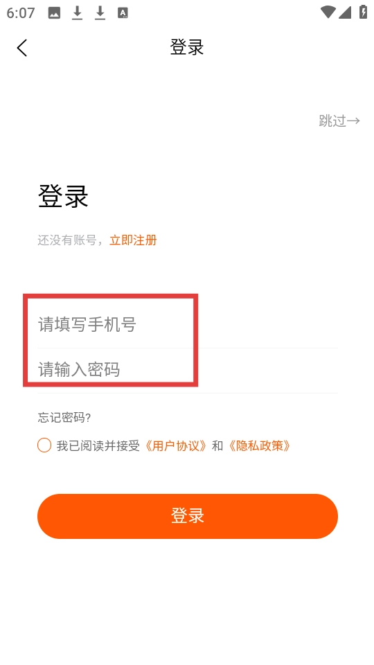 在登录页面填写手机号与密码,勾选同意相关协议后点击【登录】按钮,即可完成购买流程。