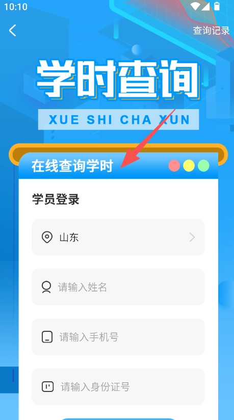 学员进入学时查询页面后,只需填写地区、姓名、手机号和身份证号,就能完成查询操作。