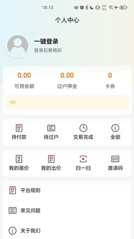 个人中心模块可集中管理交易进度,待付款、待过户等各类状态清晰呈现,方便用户随时跟踪与处理。