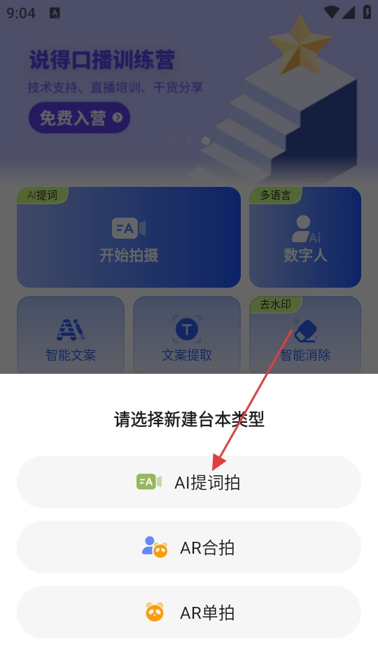 在软件首页,点击【+新建台本】按钮后,会弹出新建台本的类型选择框。