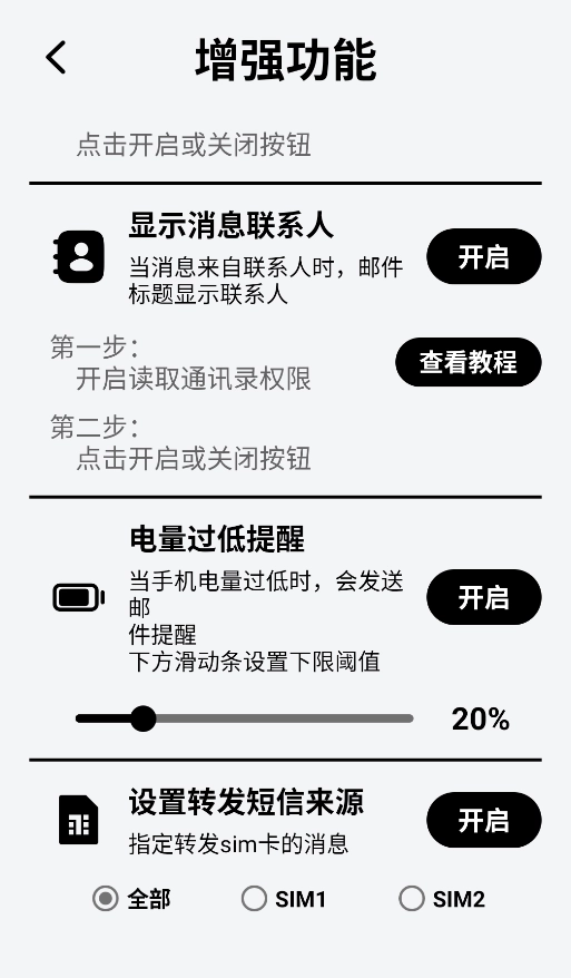 通过“增强功能”,你可以设置关键词过滤、定时转发等个性化规则。