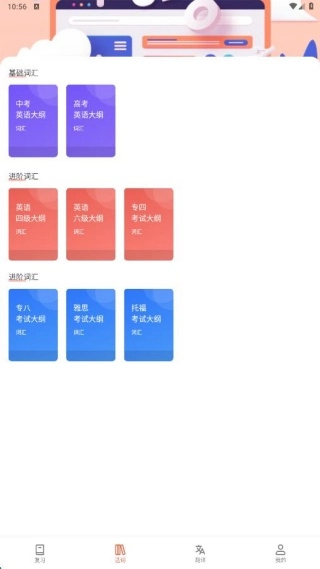 1、在复习页面,我们能够自行添加新的单词学习列表,操作十分便捷,学习内容完全由你自主定义。