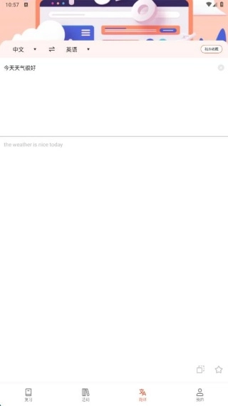 3、进入翻译页面后,我们可以享受免费的使用体验,同时该页面还具备收藏和复制功能,这便于我们随时查看过往的历史记录。
