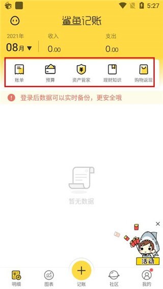 鲨鱼记账安卓版是一款便捷的手机记账应用,用户能在其中记录每日收支金额,还可按周、按月统计消费情况。软件支持设置消费限额,帮助用户培养健康的消费习惯,清晰掌握日常支出。感兴趣的用户不妨前来体验使用!