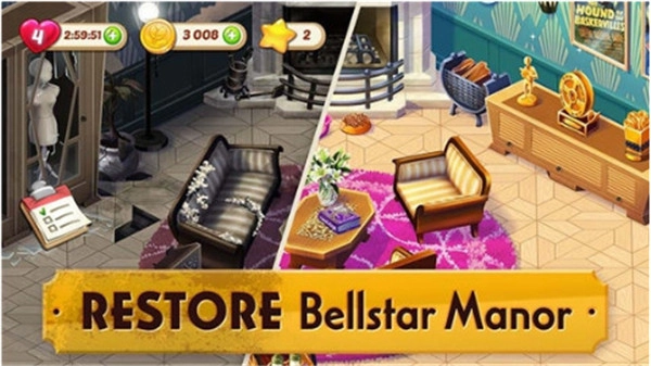 创新性地将消除玩法与房屋改造系统相融合,玩家通过完成解谜挑战来获取装修资源,亲身见证破败豪宅一步步重焕生机的全过程。