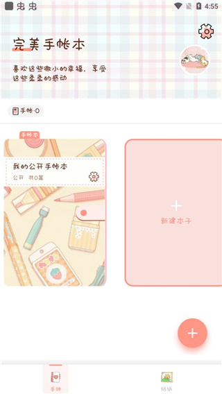 打开软件后,界面设计较为简约,点击右侧的“新建本子”按钮即可创建新的手账本。