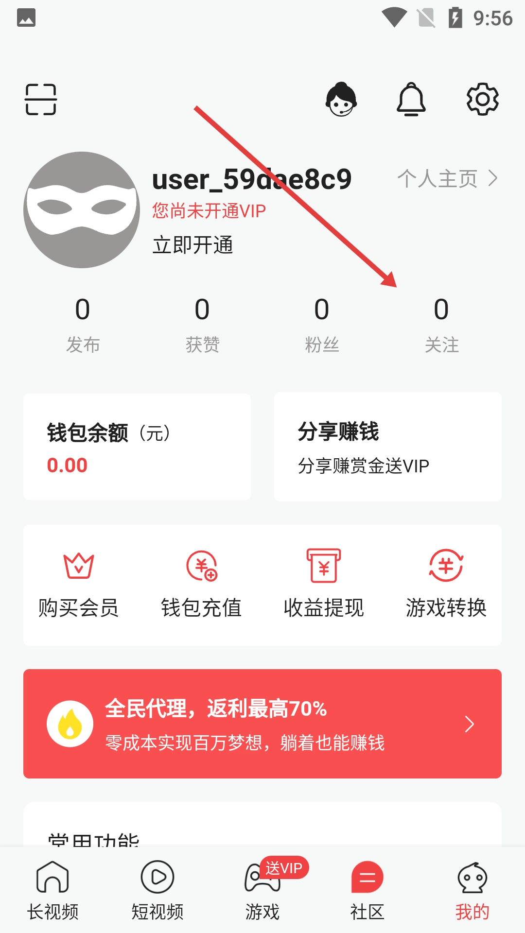 2、在个人页面,点击【关注】选项,进入“我关注的”页面。