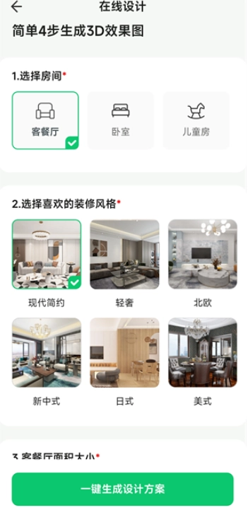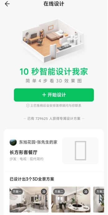 在线设计服务:为用户提供免费的设计方案,只需填写基础信息,就能快速获取专属的3D全景装修方案