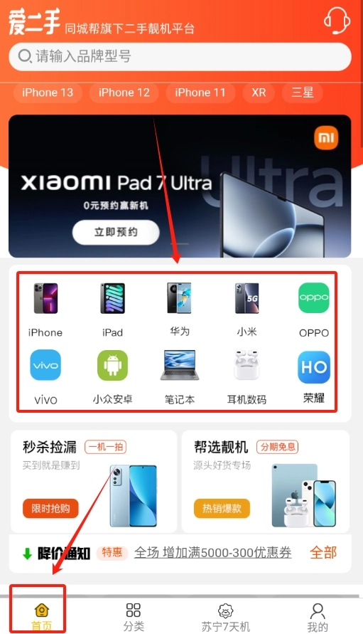 进入首页后,您可以通过商品分类进行浏览,也能借助搜索功能来查找自己心仪的二手手机。