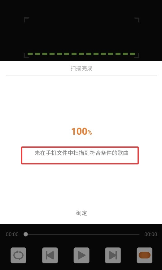 2、点击“开始扫描”按钮后,系统会自动查找设备存储里的音乐文件。