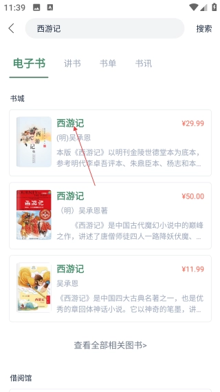 在搜索结果页,选择【目标书籍】,进入详情页面。