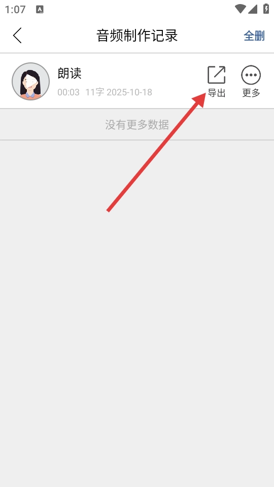 合成操作完成后,进入音频制作记录页面,点击【导出】按钮。