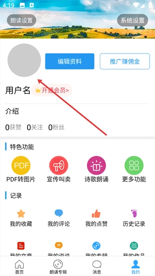 点击底部【我的】按钮,进入个人页面。