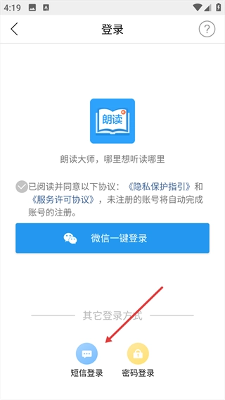 登录界面支持多种登录方式,点击【短信登录】即可切换为短信验证登录模式。