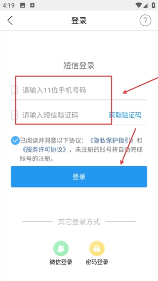 填写手机号和验证码后,点击【登录】完成操作。