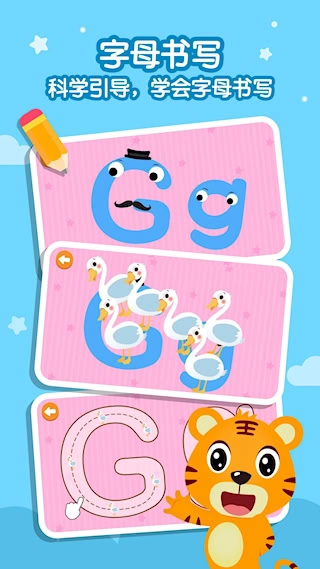 1、贝乐虎英语运用分级课程体系,涵盖26个字母单元以及200多个基础单词的教学内容。借助动画故事和互动游戏相融合的形式,由浅入深地帮助孩子构建字母与发音之间的对应联系。