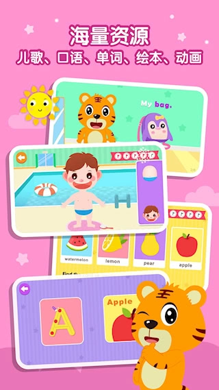 2、课程体系涵盖26个字母单元的教学内容,包含超200个基础单词及对应的跟读练习。搭配44首经典英文儿歌,借助分阶段的专项训练,达成系统化的语言启蒙目标。