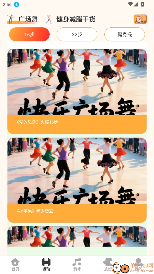 3. 进入运动页面后,可查找你喜爱的广场舞教学资源,点击即可进入。