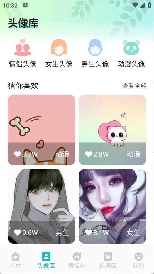 3、“头像库” 中,适合男生与女生的头像均有收录;