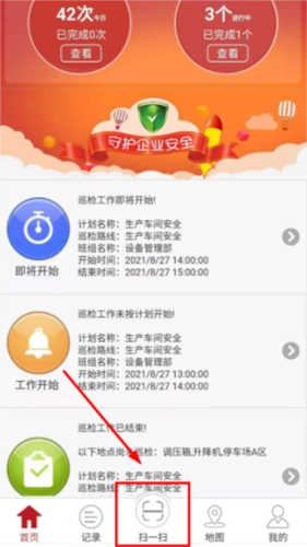 点击主界面底部中间位置的【扫一扫】图标按钮,扫描巡检点处的二维码。