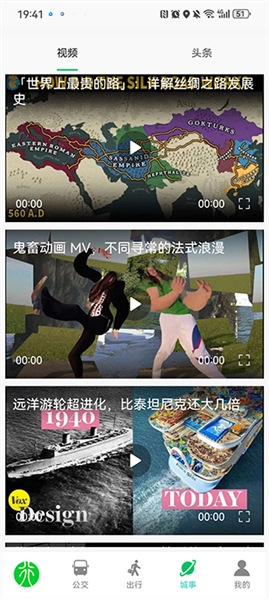 用户点击城事按钮,可以查看热门视频和头条新闻。