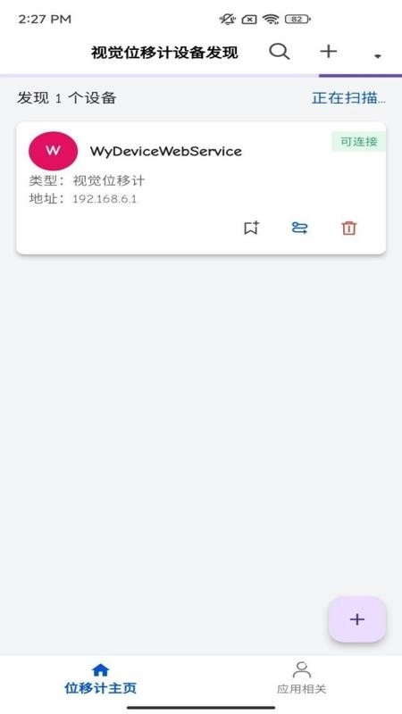 1、保持在线状态并打开视觉位移计后,即可点击加号按钮进行设备扫描与绑定操作;