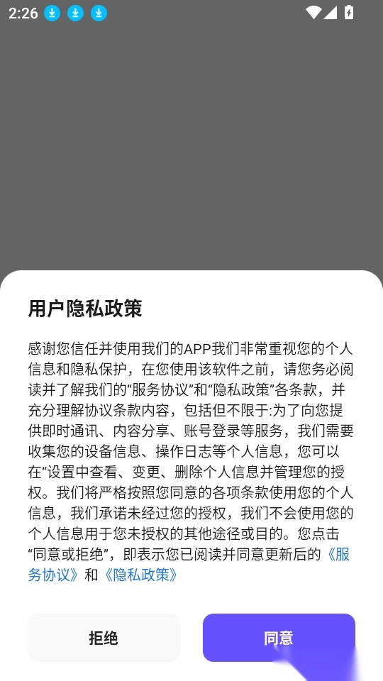 1、首先打开应用点击“同意”按钮进入中。