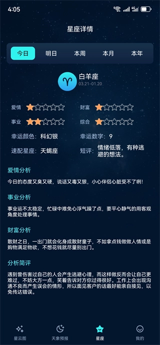 3、既涵盖专业的天文百科知识与星官星宿数据,又包含大众青睐的十二星座运势解读,能够满足各类用户的使用需求。