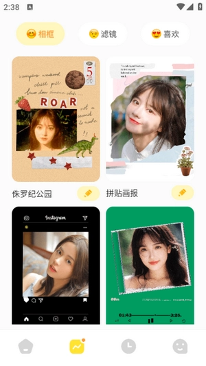 2、在主页里挑选要处理的图片,就能给图片加上相框和滤镜效果,使照片展现出不一样的风格。