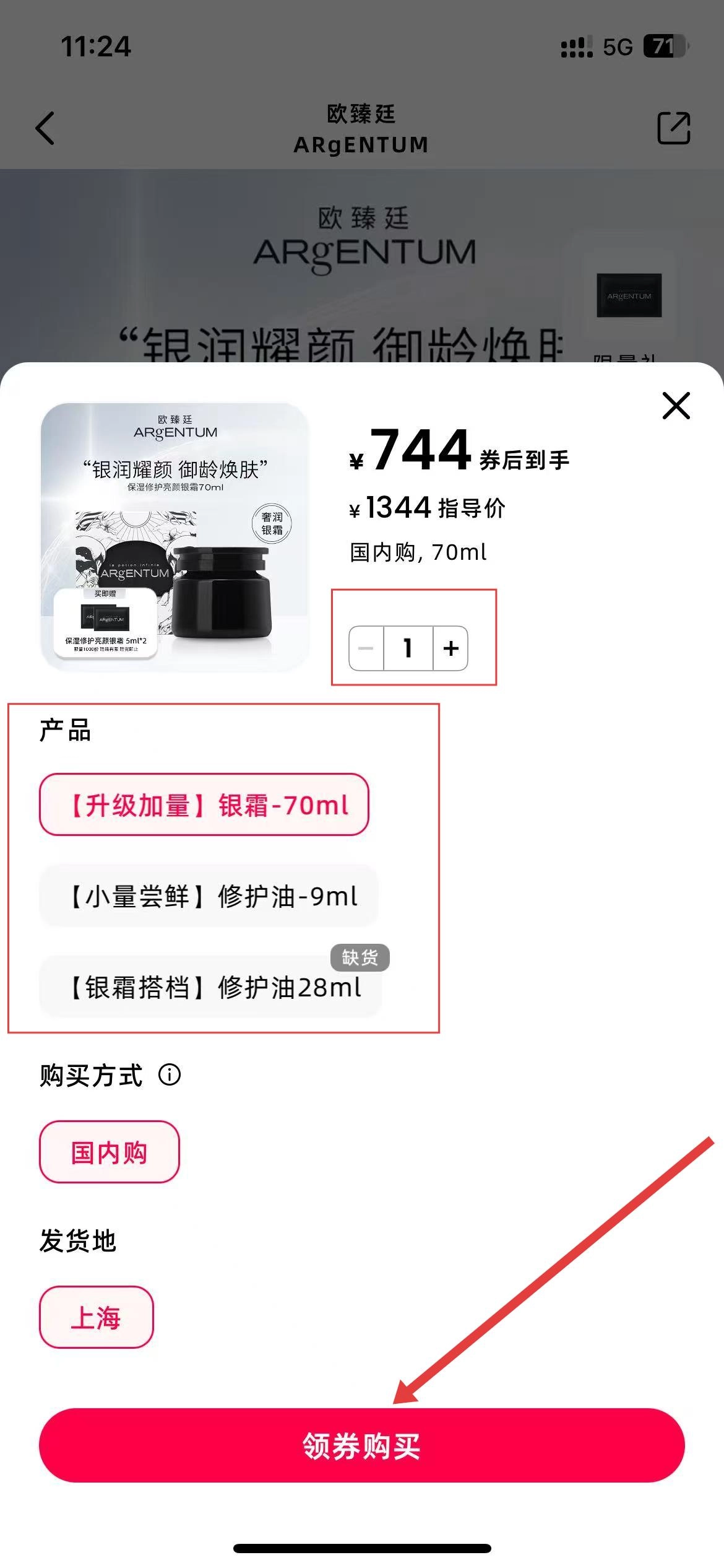 选好规格和数量后,点击【领券购买】按钮完成购买流程,下单并支付成功后我们就会立即安排发货。
