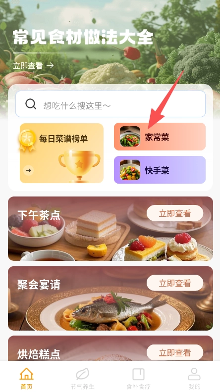 打开软件进入首页,选择家常菜分类。
