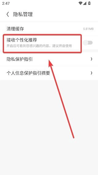 点击进入隐私管理,打开【接收个性化推荐】