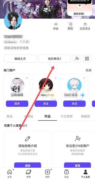 进入主页页面以后,点击【我的角色】