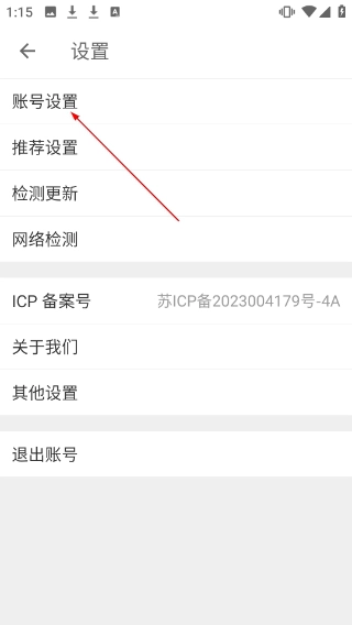 在【设置】页面中选择【账号设置】选项,就能进入账号设置页面。